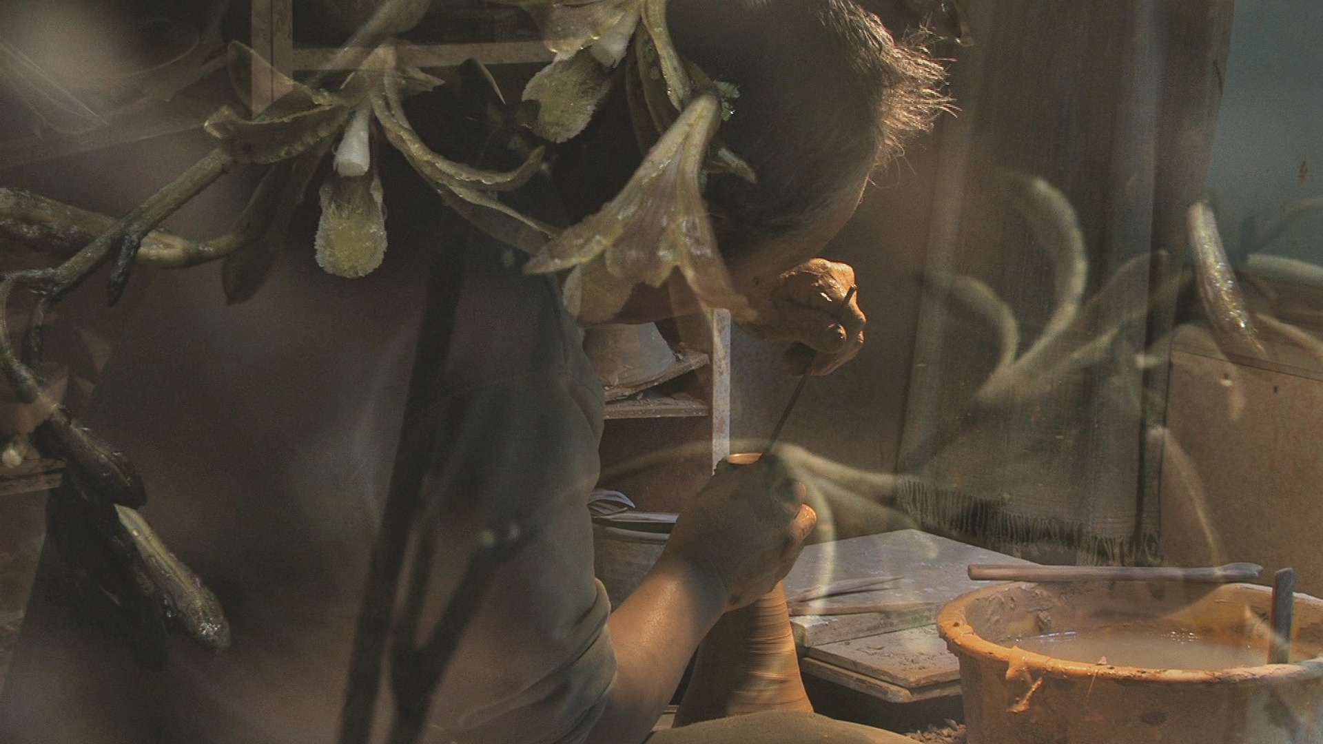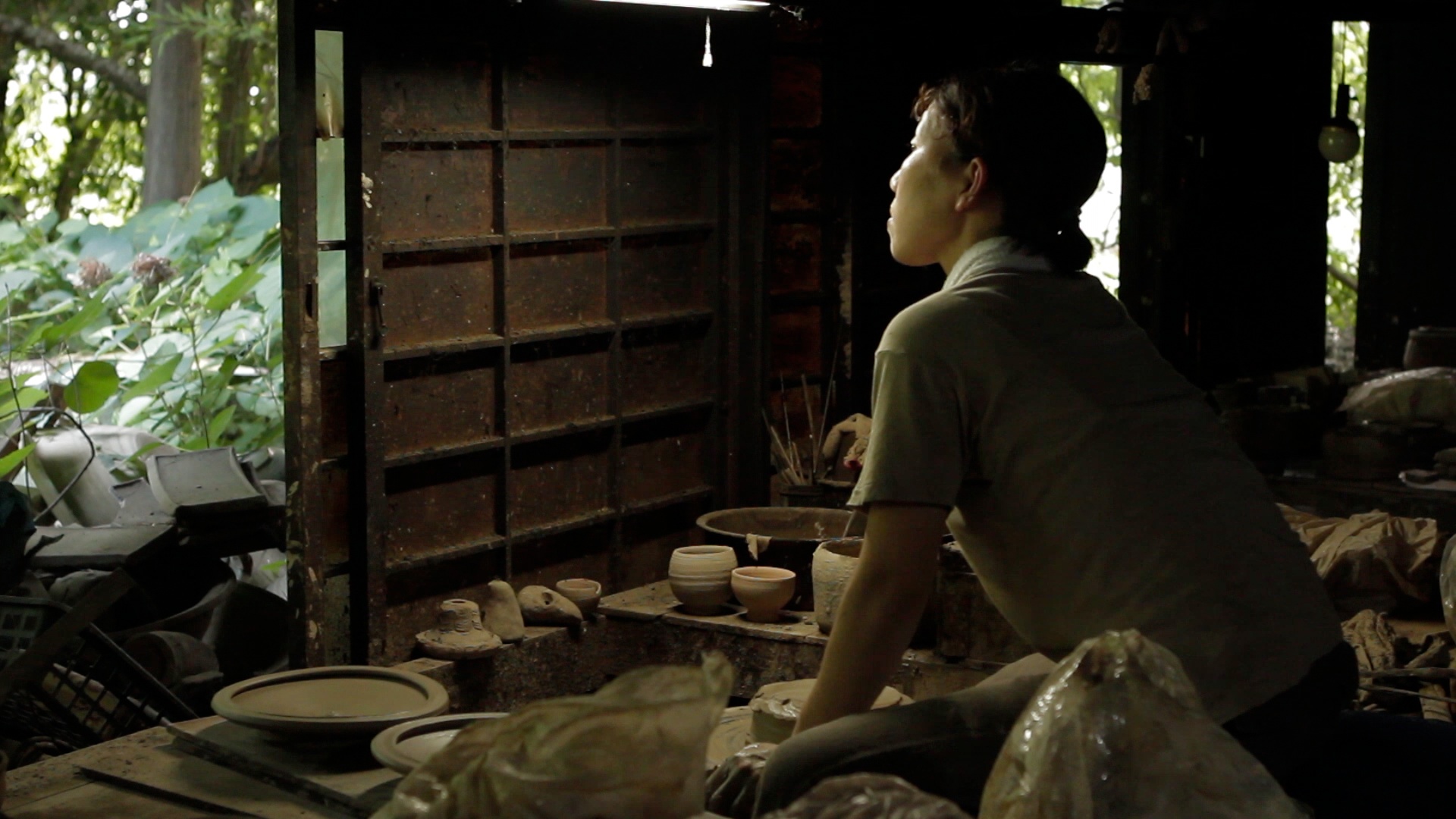 池田: あの女性は成井ふみさんといって、作中に登場する、亡くなった成井恒雄さん(Portraits#03の陶芸家)の義理の娘さんですけど、恒雄さんの仕事・仕事場を引き継ぐのが、ふみさんということに制作中になった…というか、決意されたんだと思うんですけど。