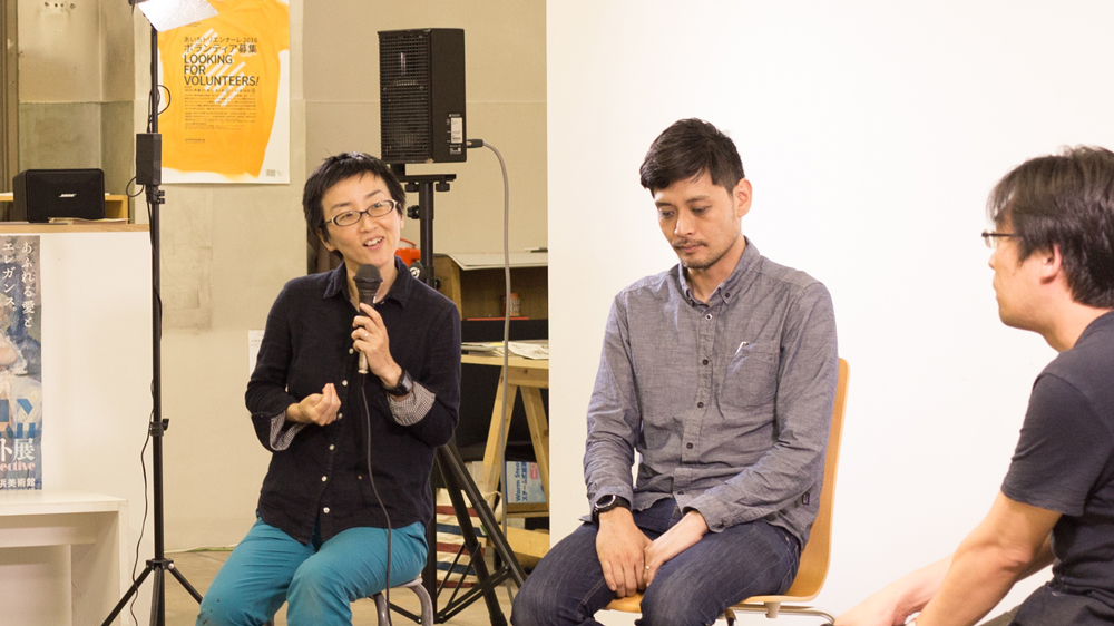 池田: 紹介します。今日見ていただいた作品のサウンド・デザイン、録音や整音とか、サウンドのこと全体をやってくれたウエヤマトモコさんが来てくれました。
